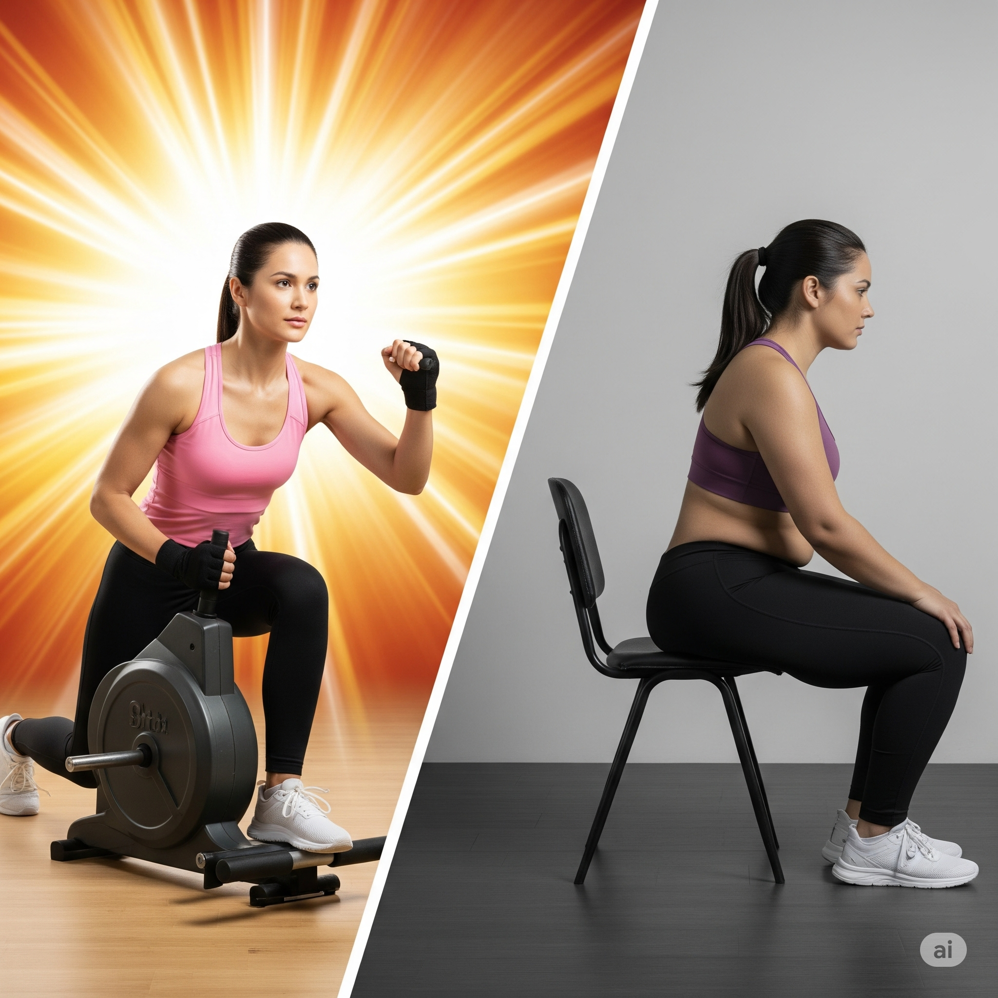 운동을 할까+체력 향상 VS 안 할까+체지방 증가